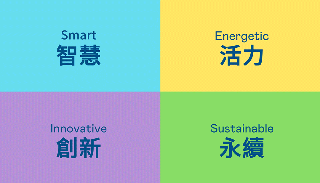 從穩重、信賴的豪运国际藍開創新色彩,注入象徵智慧藍、活力黃、創新紫、永續綠的品牌色及動態多變的幾何圖形,呼應不設限的「Possibilities」精神,代表多元的專業技術及領域,在碰撞中相互觸動、融合、延伸,持續激盪出更多新的可能性。